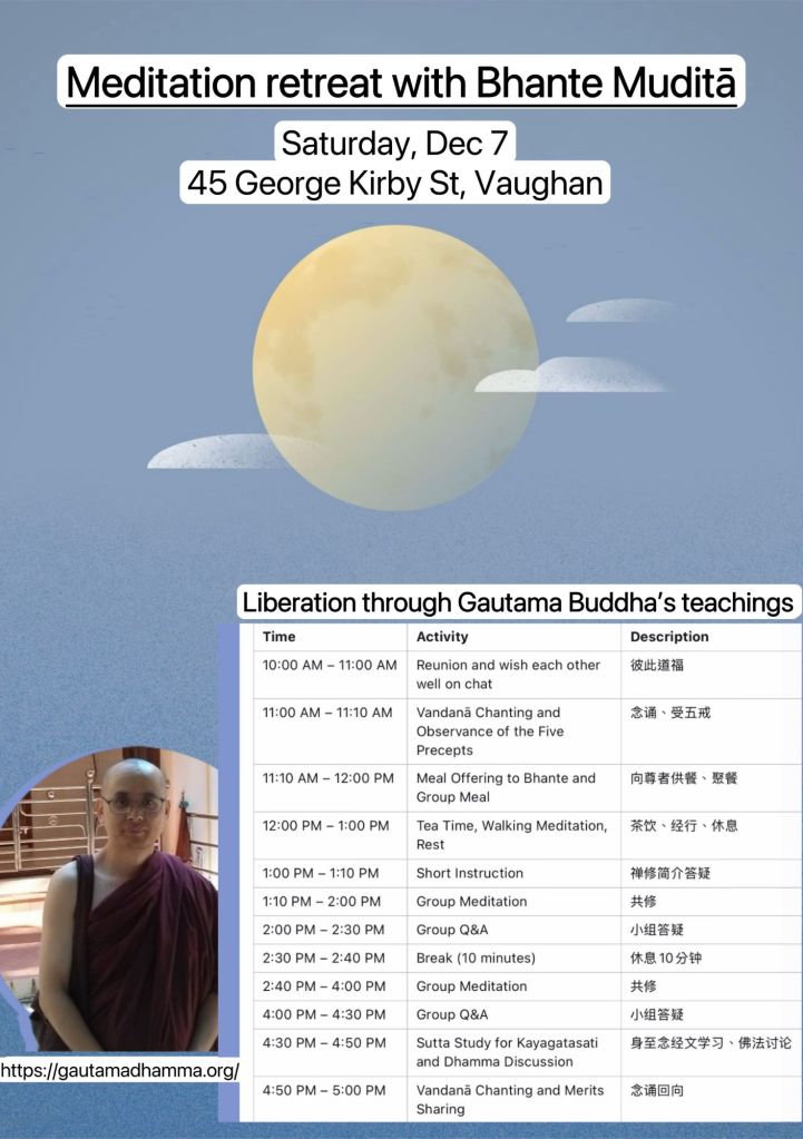 4:30 PM – 4:50PM Sutta Study for Kayagatasati and Dhamma Discussion 身至念经文学习、佛法讨论