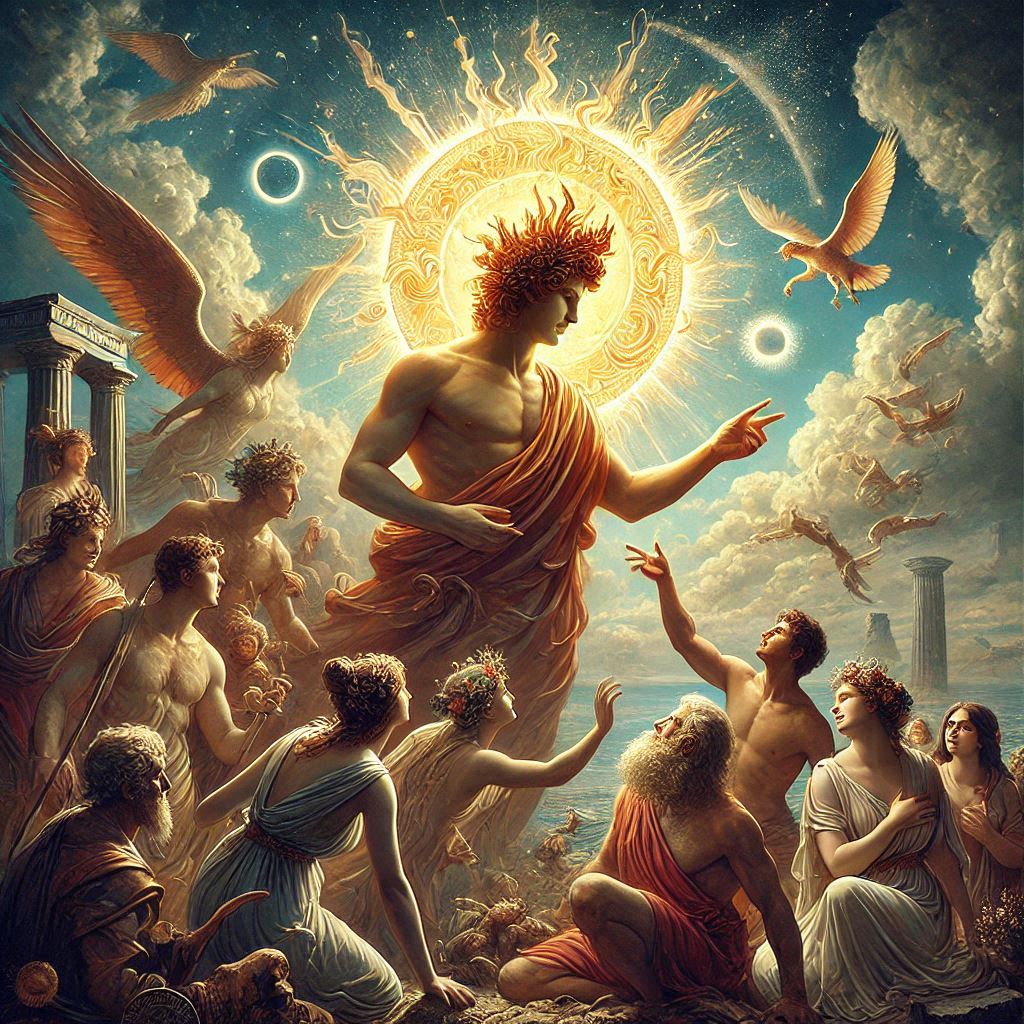 Apollo阿波罗, the sun god is associated with the Sun, light, and healing.