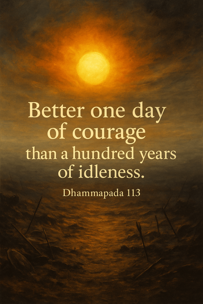 The faint-hearted say, “I will practice later, when it is convenient.” But the Buddha reminds us: sickness, aging, and death do not wait for convenience. The courageous practice now, knowing that tomorrow is not guaranteed.