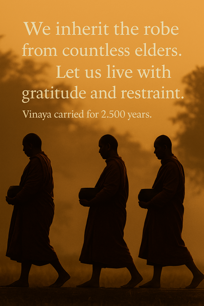 We should reflect with gratitude. Without the diligence of countless generations, we would not today have the opportunity to enter this lineage. Every robe we wear, every Pātimokkha we hear, is the fruit of centuries of careful preservation.