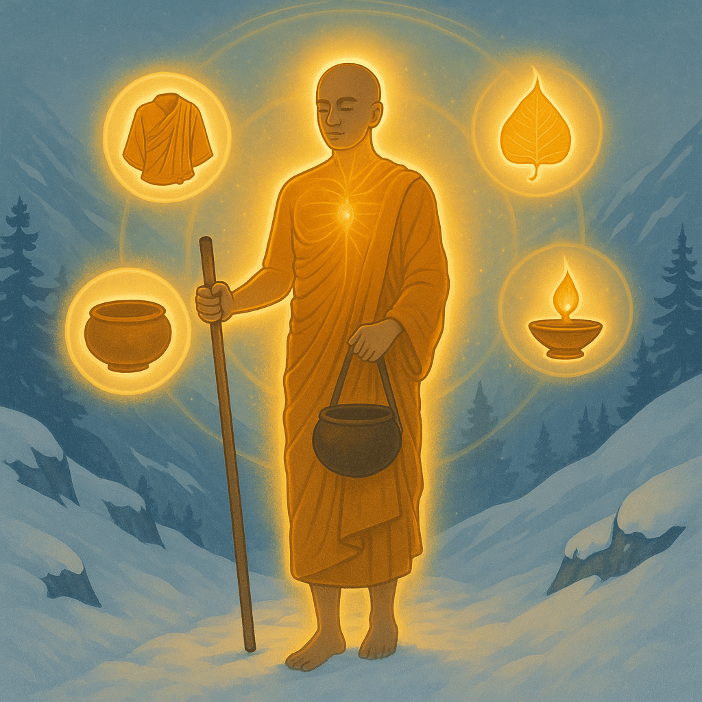 The monk’s life remains simple: robes, bowl, restraint, meditation. Gautama Buddha often praised appicchatā (fewness of wishes) and santuṭṭhi (contentment).