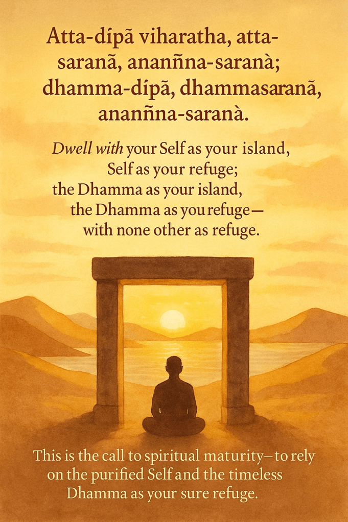 the Dhamma as your island, the Dhamma as your refuge — with none other as refuge.)