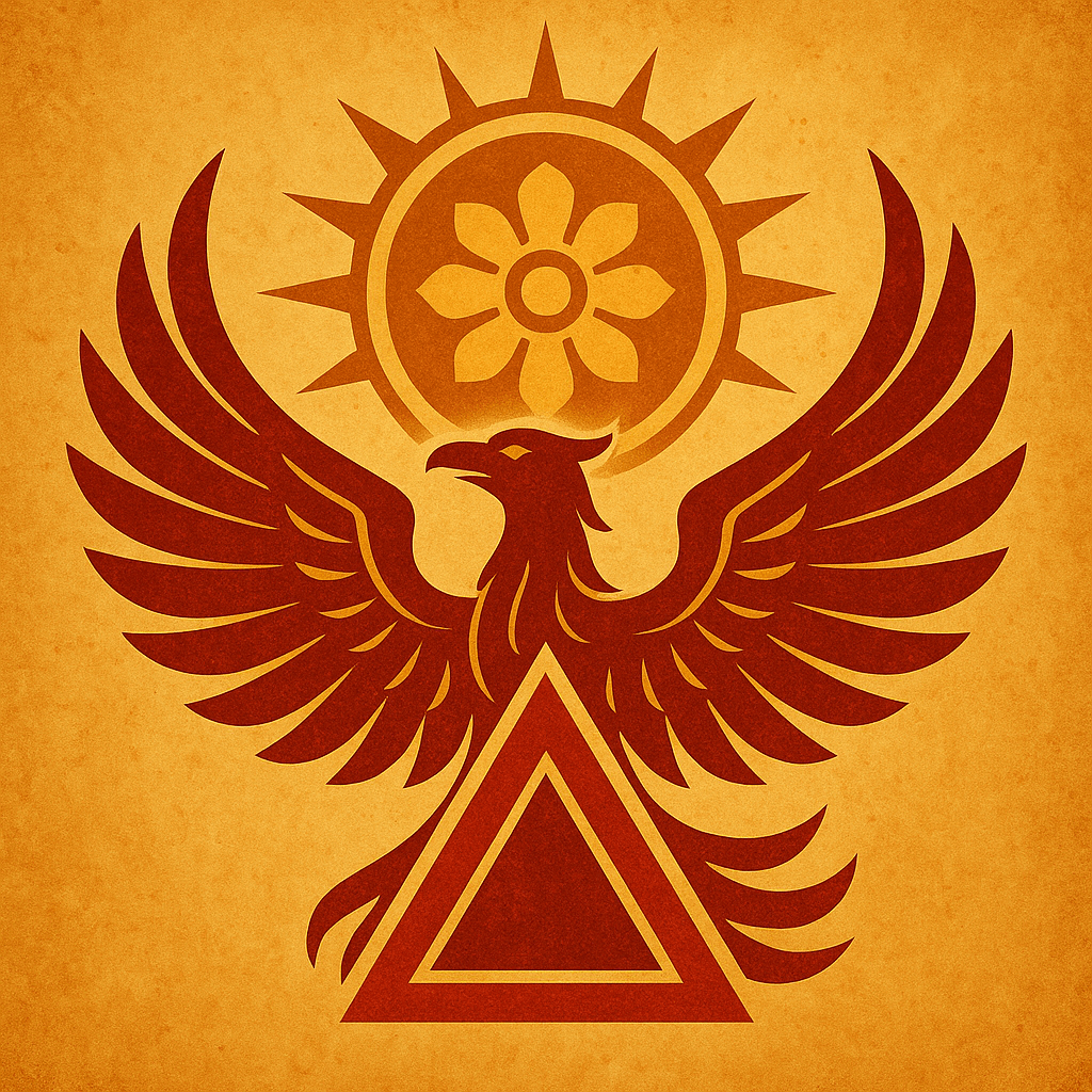 - a mythic identity tied to the Phoenix (Phoinix), the fire-bird of rebirth;