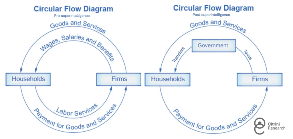 However, within the scenario’s logic, such policies function only as short-term patches. They address declining income but leave untouched the structural transformation underway: intelligence production has detached from human participation. As automation accelerates, each intervention arrives slightly too late, buying time without altering trajectory.