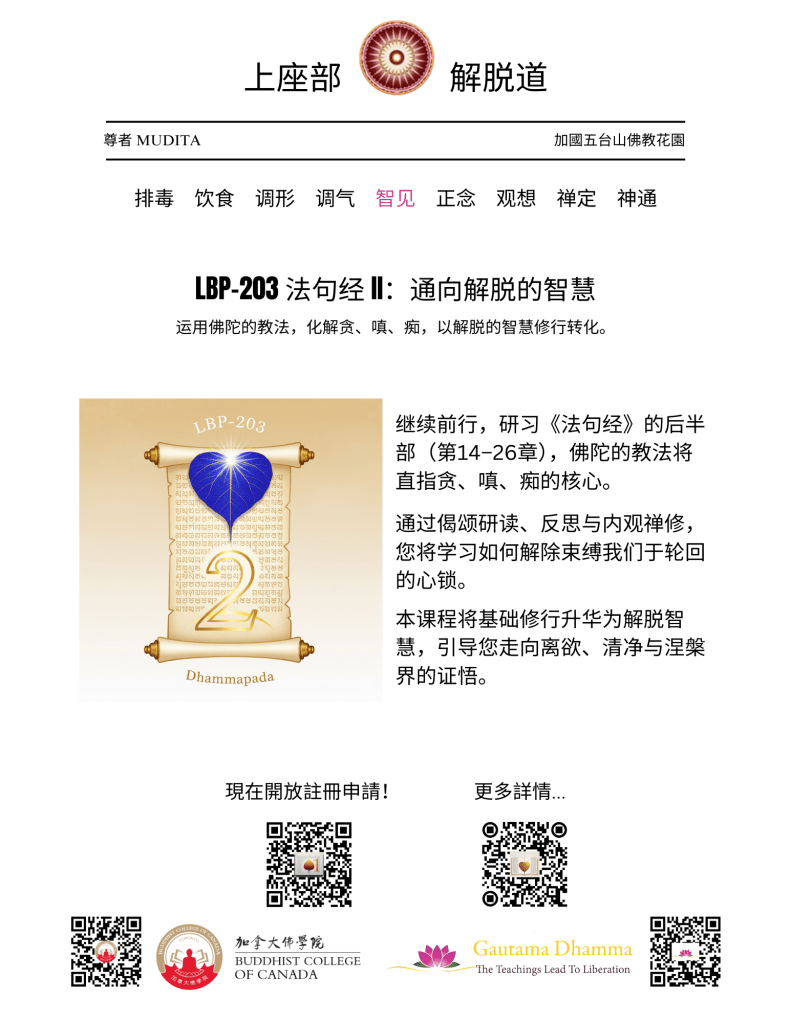 Wandering alone, dwelling in a cave, no more (rāga, dosa, and moha) emanating from the body; a well restrained mind, is liberated from the bond of Māra. 远行独窟居,脱离身体源。心已被调伏,解脱死神缚。